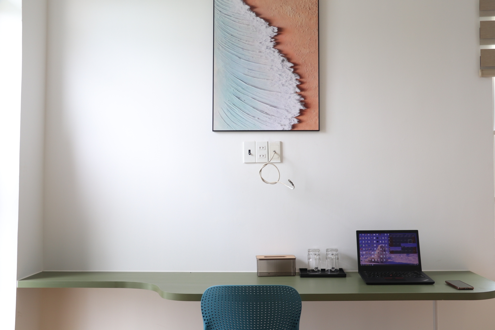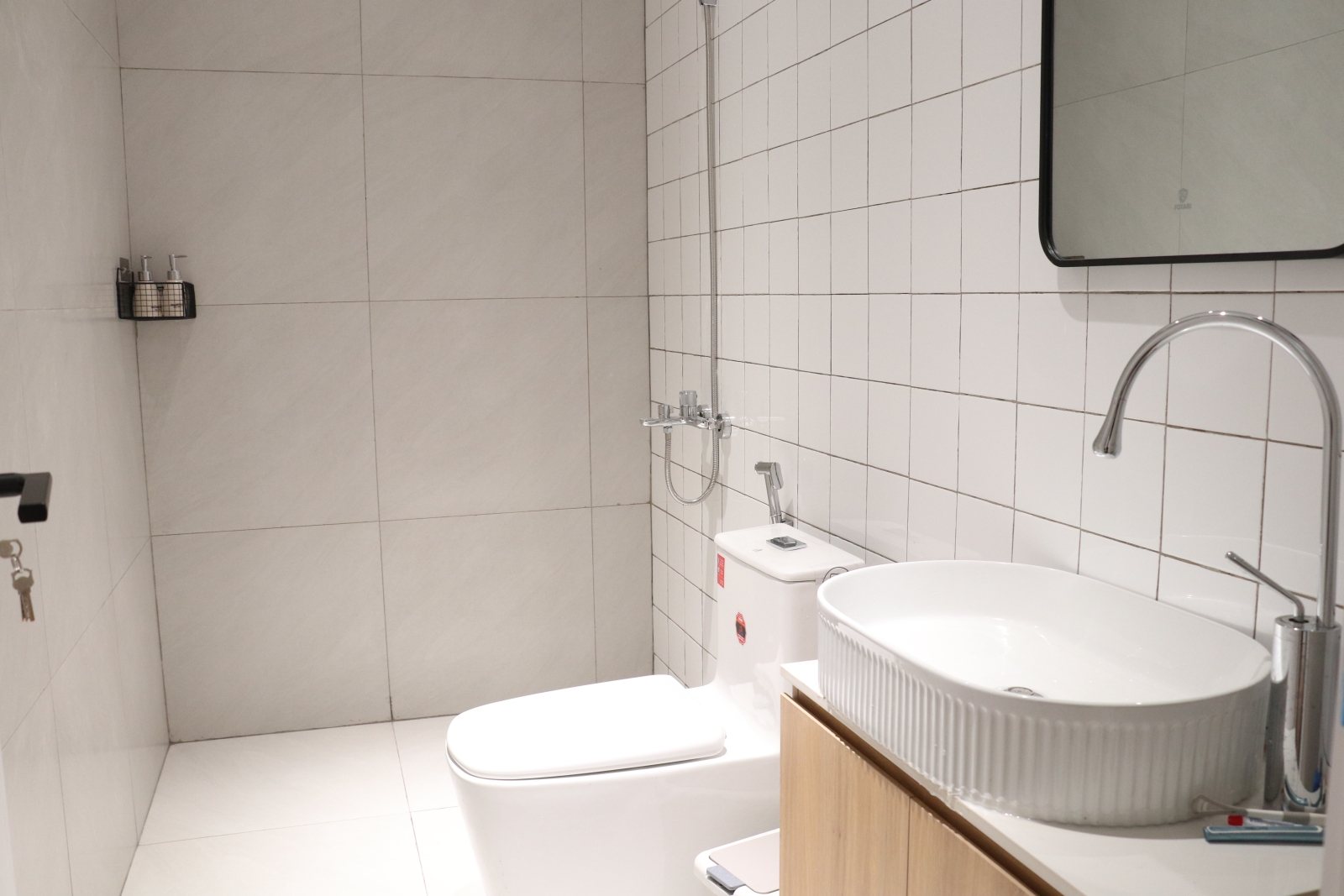 Tiện ích nội thất cơ bản: Máy giặt riêng 🧼, bàn là, ổ cắm đa năng, két sắt mini 🔒 để lưu trữ đồ cá nhân an toàn.